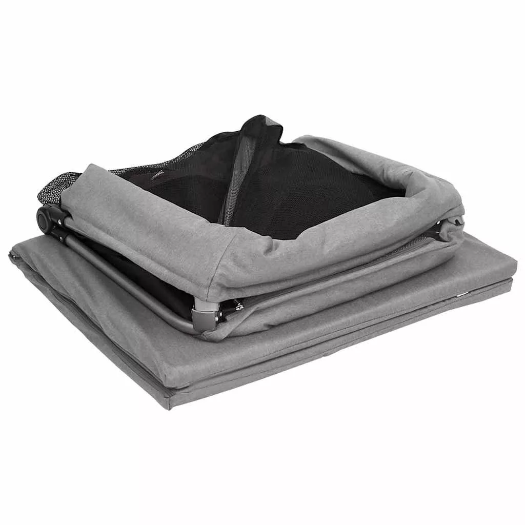 Ez a kompakt méretű babajáróka kényelmes és nyugodt helyet biztosít babája számára otthon vagy utazások alkalmával. 2 az 1-ben utazóágy: A kiságy biztonságos helyet biztosít a babának az alvásához és a pihenéséhez, és tágas játéktérrel rendelkezik. Összecsukható kialakítás: A babaágy könnyen össze is csukható. Így a mellékelt hordtáskában magával viheti, és kényelmes és biztonságos kiságyat biztosíthat babájának, bárhol is vannak. Masszív szerkezet: A babaágy alumínium- és vascsövekből készült, így masszív, stabil és ellenáll a rázkódásnak. Praktikus anyag: A vászonszövet egyszerű és letisztult megjelenésű, valamint légáteresztő és tartós. Emellett a légáteresztő hálós anyag lehetővé teszi, hogy jobban szemmel tartsa babáját.Kivehető matrac: A babaágy matraca puha és kényelmes. Cipzárral is rendelkezik, így nagyon könnyen kivehető és tisztítható. Megjegyzés: Az egyszerű összeszerelés érdekében minden termékhez mellékelünk összeszerelési útmutatót.Ezt a terméket 3 évesnél idősebb gyermekek nem használhatják. Figyelem. Ne helyezze a járókát nyílt tűz vagy más hőforrás közelébe. Ne használja a járókát alap nélkül. Győződjön meg arról, hogy a járóka teljesen fel van állítva, és minden reteszelő mechanizmus be van kapcsolva, mielőtt behelyezi gyermekét.