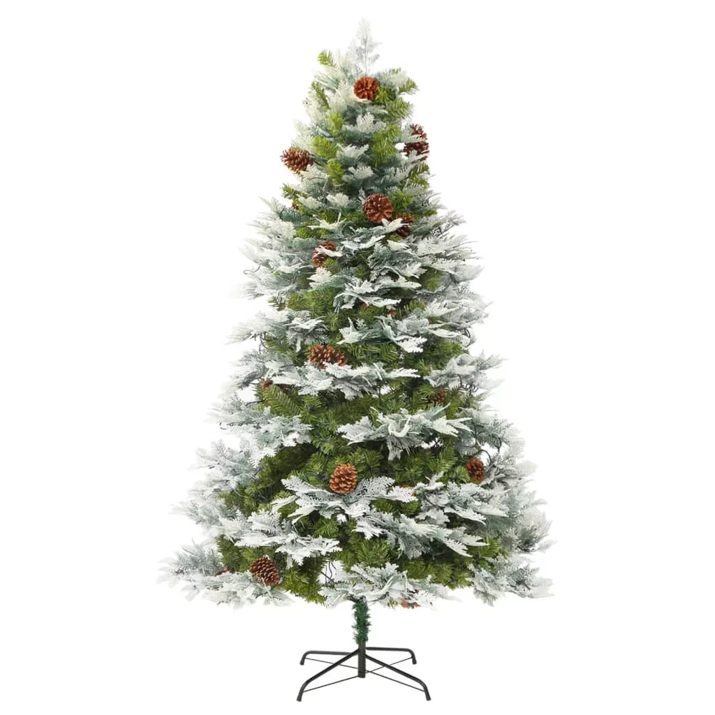 zöld PVC és PE megvilágított karácsonyfa fenyőtobozzal 195 cm