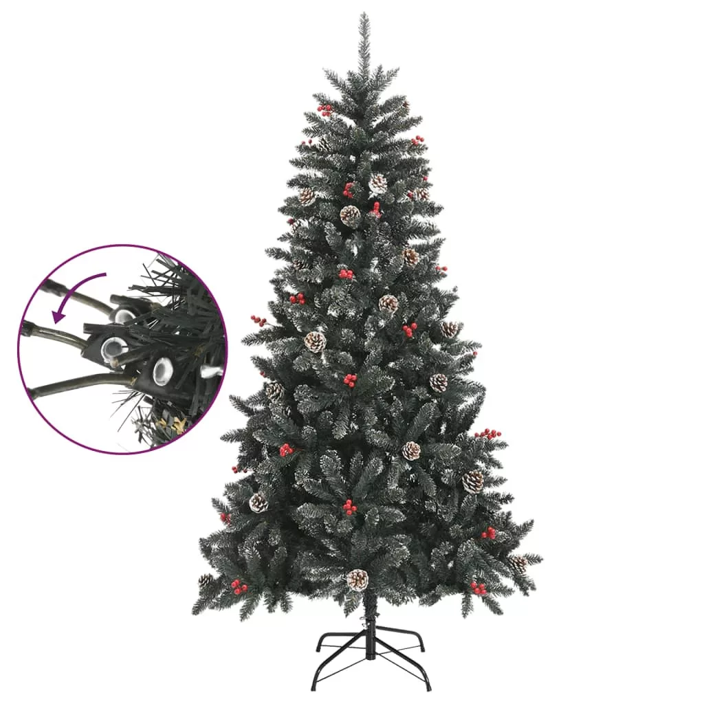Ez a jellegzetes csúcsokkal ellátott, gyönyörű és élethű műkarácsonyfa az ünnepi dekoráció fénypontja lesz. Csuklópántos szerkezet: Ez a lenyűgöző fa csuklópántos felépítésű, így az ágak automatikusan a megfelelő szögbe hajlanak. Így sokkal könnyebben állíthatja fel a fát tökéletes formájúra, és időt is spórolhat.Dús karácsonyfa: A karácsonyfa számos gyönyörű PVC csúccsal rendelkezik, amelyek gyönyörű, valósághű és dús megjelenést biztosítanak a fának.Masszív állvány: A műfa masszív acélállványa optimális stabilitást biztosít a fának.Gyönyörű dekoráció: A karácsonyfán tobozok és bogyók találhatók, amelyek gyönyörű és természetes hatást keltenek. Fehér műhóval és csillámokkal van díszítve, így egyedi téli hangulatot teremt.Tartósság: A karácsonyfa minden évben újra használható, így nagyon gazdaságos választás egy valódi fához képest. Megjegyzés:Az egyszerű összeszerelés érdekében minden termékhez mellékelünk összeszerelési útmutatót.