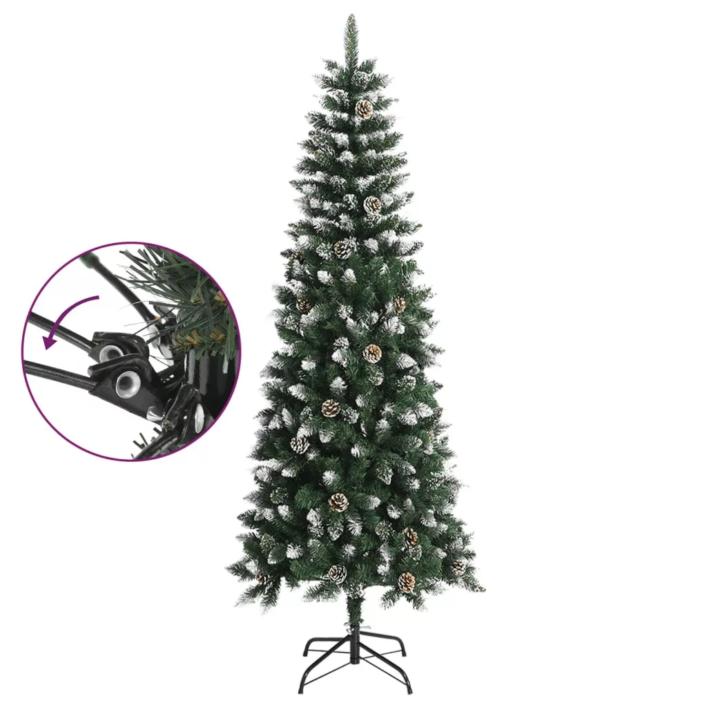 Ez a jellegzetes csúcsokkal ellátott, gyönyörű és élethű műkarácsonyfa az ünnepi dekoráció fénypontja lesz. Csuklópántos szerkezet: Ez a lenyűgöző fa csuklópántos felépítésű, így az ágak automatikusan a megfelelő szögbe hajlanak. Így sokkal könnyebben állíthatja fel a fát tökéletes formájúra, és időt is spórolhat.Dús karácsonyfa: A karácsonyfa számos gyönyörű PVC csúccsal rendelkezik, amelyek gyönyörű, valósághű és dús megjelenést biztosítanak a fának.Masszív állvány: A műfa masszív acélállványa optimális stabilitást biztosít a fának.Gyönyörű dekoráció: A karácsonyfán tobozok találhatók, amelyek gyönyörű és természetes hatást keltenek. Fehér műhóval és csillámokkal van díszítve, így egyedi téli hangulatot teremt.Tartósság: A karácsonyfa minden évben újra használható, így nagyon gazdaságos választás egy valódi fához képest. Megjegyzés:Az egyszerű összeszerelés érdekében minden termékhez mellékelünk összeszerelési útmutatót.