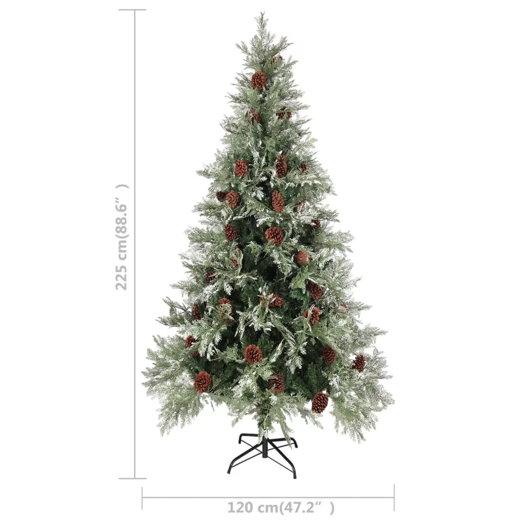 zöld és fehér karácsonyfa fenyőtobozokkal 225 cm