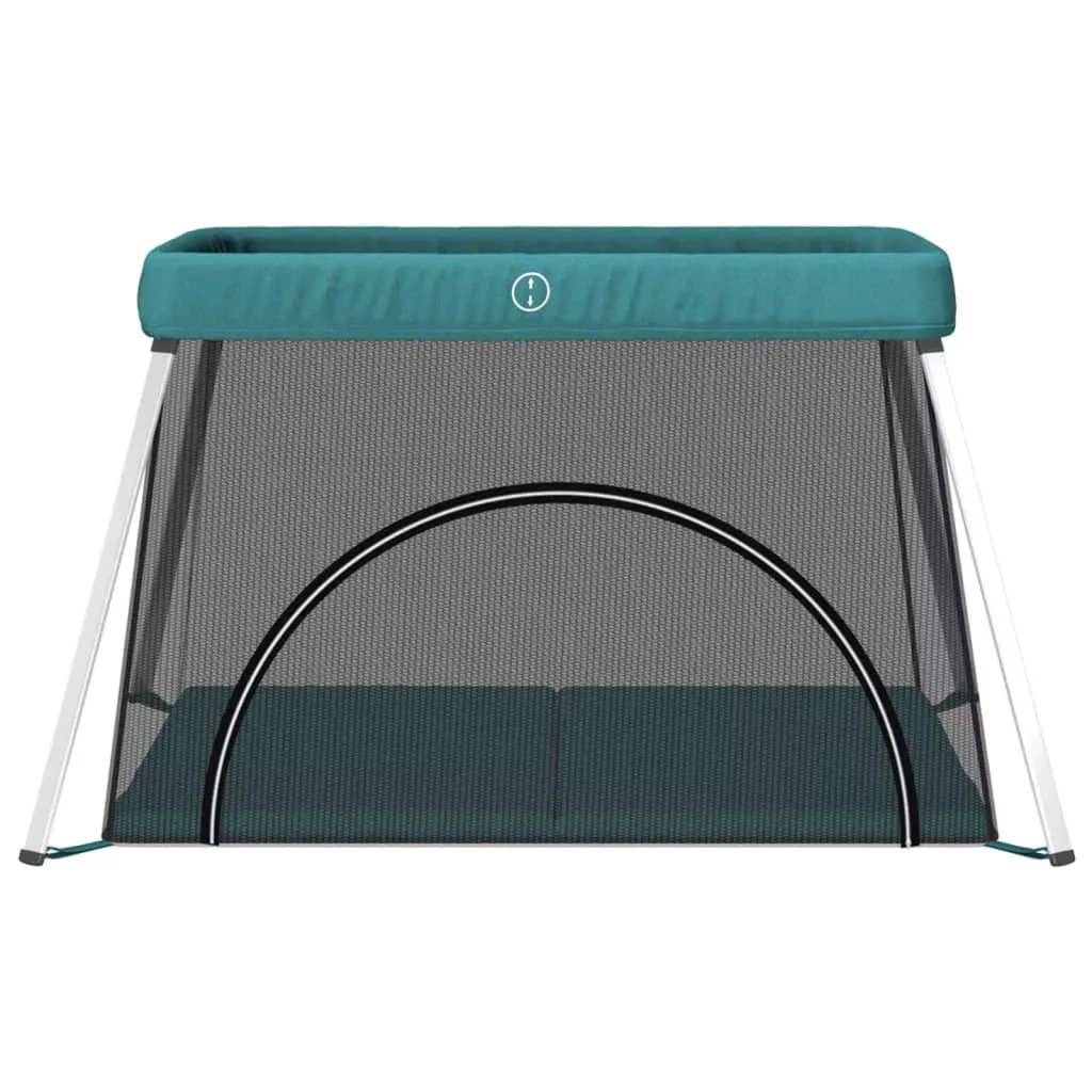 Ez a kompakt méretű babajáróka kényelmes és nyugodt helyet biztosít babája számára otthon vagy utazások alkalmával. 2 az 1-ben utazóágy: A kiságy biztonságos helyet biztosít a babának az alvásához és a pihenéséhez, és tágas játéktérrel rendelkezik. Összecsukható kialakítás: A babaágy könnyen össze is csukható. Így a mellékelt hordtáskában magával viheti, és kényelmes és biztonságos kiságyat biztosíthat babájának, bárhol is vannak. Masszív szerkezet: A babaágy alumínium- és vascsövekből készült, így masszív, stabil és ellenáll a rázkódásnak. Praktikus anyag: A vászonszövet egyszerű és letisztult megjelenésű, valamint légáteresztő és tartós. Emellett a légáteresztő hálós anyag lehetővé teszi, hogy jobban szemmel tartsa babáját.Kivehető matrac: A babaágy matraca puha és kényelmes. Cipzárral is rendelkezik, így nagyon könnyen kivehető és tisztítható. Megjegyzés: Az egyszerű összeszerelés érdekében minden termékhez mellékelünk összeszerelési útmutatót.Ezt a terméket 3 évesnél idősebb gyermekek nem használhatják. Figyelem. Ne helyezze a járókát nyílt tűz vagy más hőforrás közelébe. Ne használja a járókát alap nélkül. Győződjön meg arról, hogy a járóka teljesen fel van állítva, és minden reteszelő mechanizmus be van kapcsolva, mielőtt behelyezi gyermekét.